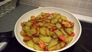 Tykkään ruuanlaitosta todella paljon, kuten myös syömisestä (ja sen kyllä huomaa 😉 ), mutta mitään hienosteluruokaa en osaa tehdä, mutta sellaista perushyvää ruokaa ja tietenkin paljon. Oon nimittäin sitä mieltä, että jos ruokailun jälkeen jää nälkä, jotain on mennyt pahasti pieleen…